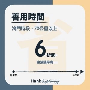 這些特定時段,大多是週一到週四較冷門的時段,如果探索者剛好有需求,不妨透過這個早享優惠,來享受超優惠的折扣!