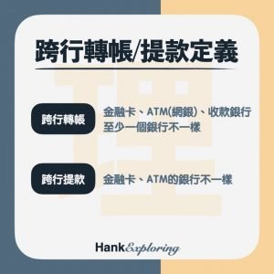 數位帳戶懶人包一文中,我有提到「跨行轉帳、提款」的概念,究竟跨行轉帳、提款是什麼?這樣做竟然會被額外收手續費?這篇漢克將探索跨行轉帳提款的概念、手續費收取標準及金額上限,最後也會告訴你如何省下跨行轉帳、提款手續費