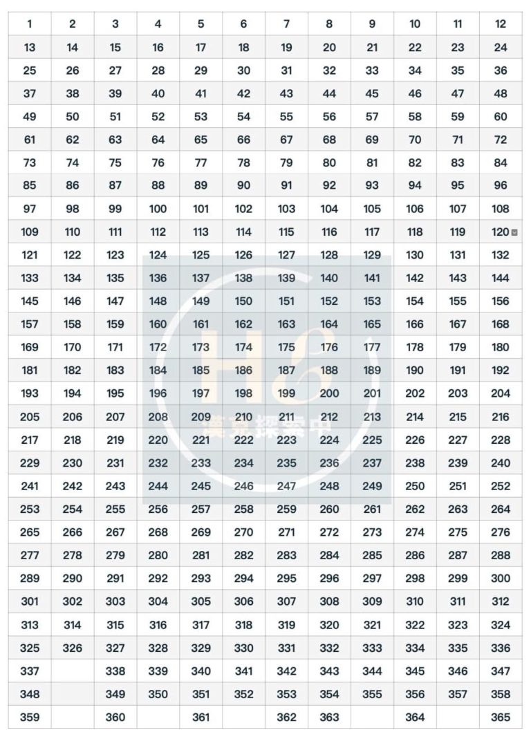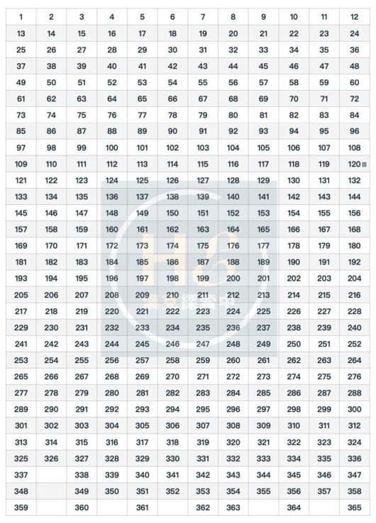 1.表格內為 1~365 數字,由左到右,由上到下依序增加,你可以每存一天就把數字劃掉。