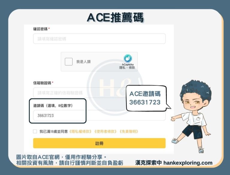 如果你怕忘記輸入ACE邀請碼,也可以直接點下方按鈕註冊ACE,可直接帶入推薦碼哦!