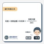 在這邊也告訴你一個簡易算法,你只要記年利率 1%、10 萬元存 30 天,利息約 80 元(口訣:是三八),之後遇到其他的年利率,只要把 80 乘以對應利率,就能快速粗估利息囉!