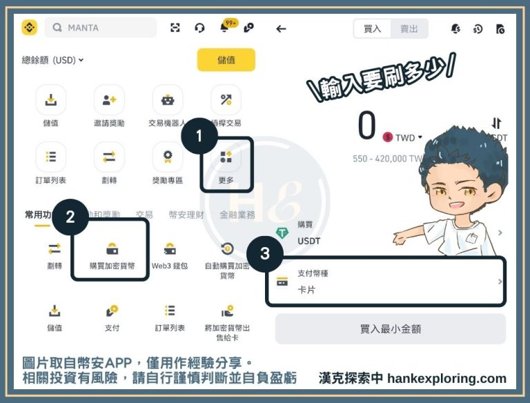 - 信用卡買幣:適合小額入金且不想學習、只想趕快有加密貨幣的人。