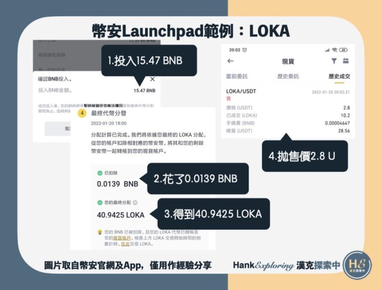 漢克在此實際以幣安2022年1月IEO推出的LOKA來舉例: