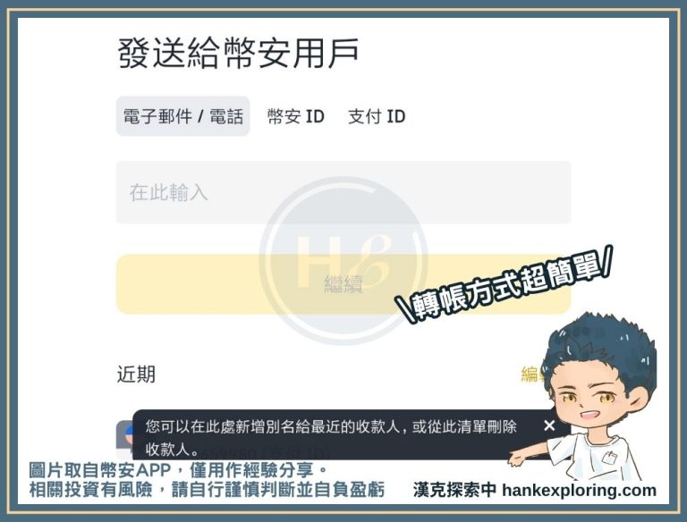 這邊漢克會示範怎麼使用轉帳及收款功能,至於下面兩個則可探索幣安紅包是什麼?怎麼領?