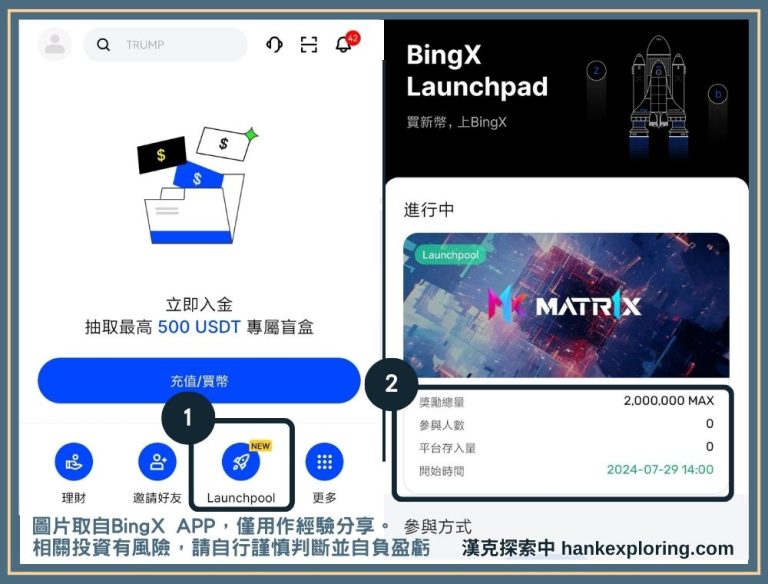 如果你願意承擔以上風險,且還是想參加 BingX Launchpool 的話,我就來用圖解跟影片示範該如何參加挖礦活動。