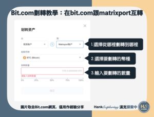 漢克實測以matrixport帳號登入,並從Bit.com交易所提領加密貨幣,整個過程十分流暢,沒有阻撓出金的情況,加密貨幣也順利在幾分鐘內提領到目的地。