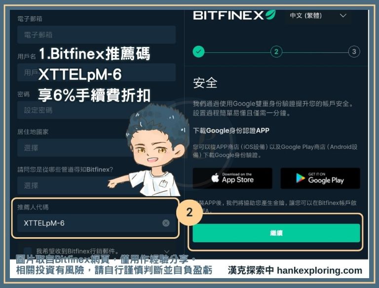 Bifinex 註冊教學:確認推薦碼並設置安全選項