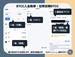 接著漢克直接圖解示範如何從幣安轉到BTCC囉!