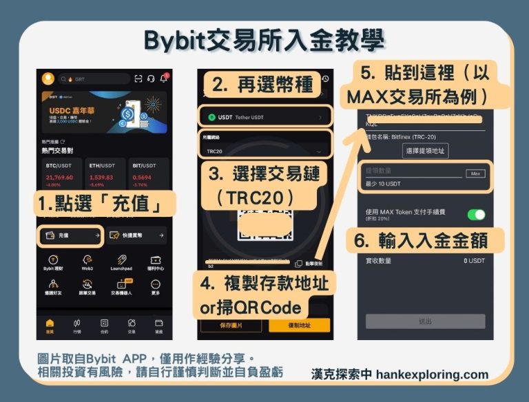 至於該如何準備好加密貨幣?我最常透過MAX交易所用台幣購買USDT,或是在幣安交易所入金,取得加密貨幣後再充值到Bybit。