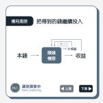 - 基金複利:基金領到的配息如果再次投入的基金中,也能創造複利效果。