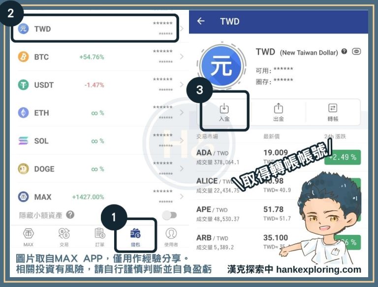 虛擬貨幣投資步驟一:將台幣轉入 MAX 交易所