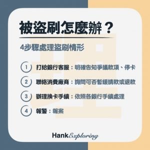簽帳卡被盜刷了怎麼辦?這篇漢克將探索簽帳卡被盜刷的 4 步驟處理方式,以及最多人擔心的「錢到底拿不拿得回來」,如果你發現被盜刷,一定要仔細照著本文步驟做,不然很有可能要自行承擔被盜刷的錢!最後我也會分享如何避免簽帳卡再次被盜刷。
