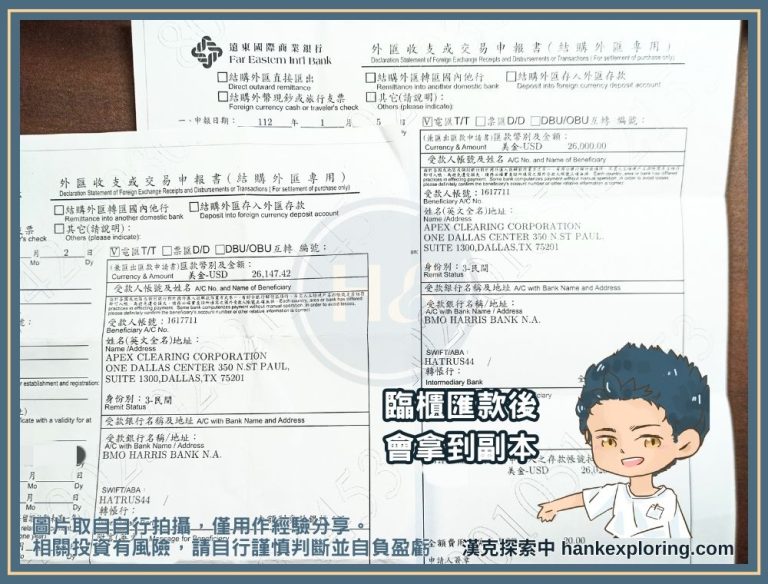 同時漢克將貼心附上 2025 國泰、台新、玉山銀行的 Firstrade 匯款範例,讓第一次接觸的探索者可以快速上手,現在就來探索吧!