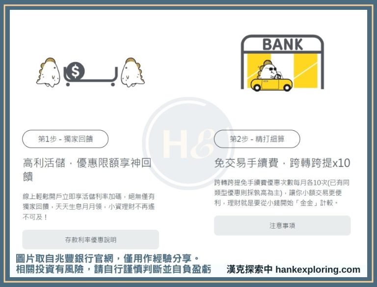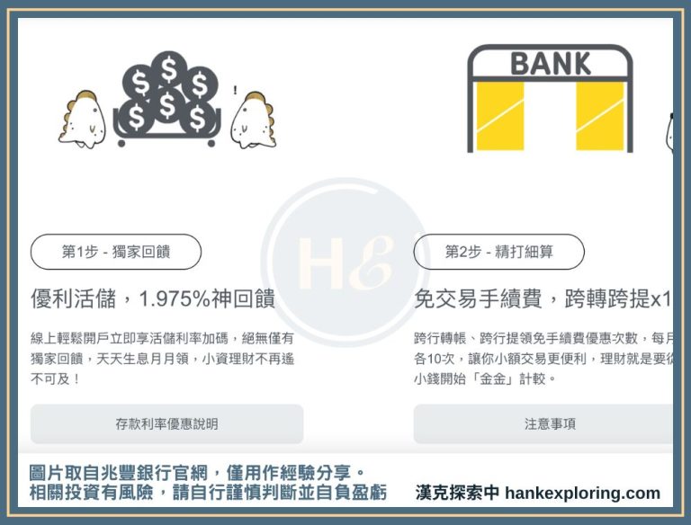 整體來說,漢克覺得亮點只在跨行交易跟基金優惠(後面會提到),至於活存優惠利率部分,有其他許多利率也不錯的帳戶。