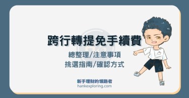 你轉帳還在付手續費嗎?在跨行轉帳提款手續費一文中,我介紹了省轉帳手續費的方法,其中最簡單的就是找有優惠的數位帳戶,這篇漢克就來統整 27 家數位帳戶跨行轉帳、提款免手續費的優惠,並告訴你有哪些優惠陷阱,以及該如何挑選、查看自己的跨轉提剩餘次數(已更新至 2025 請放心服用)。 跨行轉帳提款免手續費整理 最常用的銀行功能非轉帳莫屬,但只要轉帳到其他銀行,就會被收一筆手續費,對小資族來說非常傷。不過...