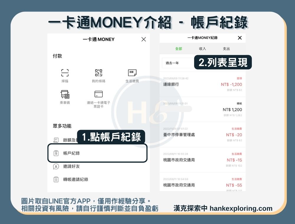 付款後,也能查看帳戶紀錄,只要從一卡通MONEY頁面往下找到「帳戶紀錄」,點進去即可查看收支一覽表,像是繳費、轉帳、提領等紀錄都一目瞭然,最久可以回溯到一年,資訊呈列蠻清楚的。