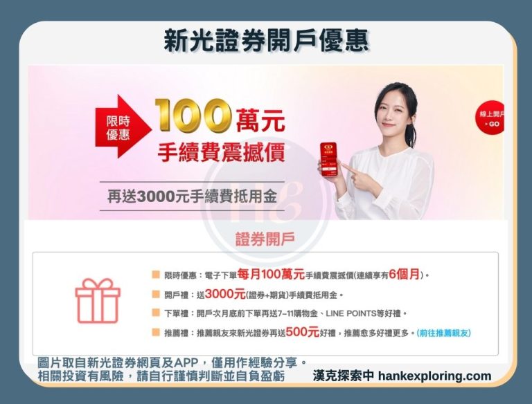 本篇漢克就要來根據自己使用的經驗,完整分享新光證券的開戶優惠、手續費、注意事項及優缺點評價,希望能幫你快速上手!