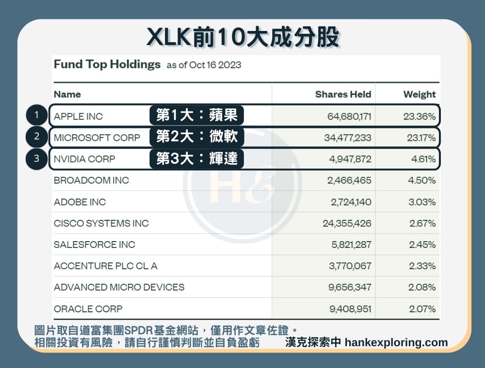 參考資料:XLK 道富環球SPDR基金網站