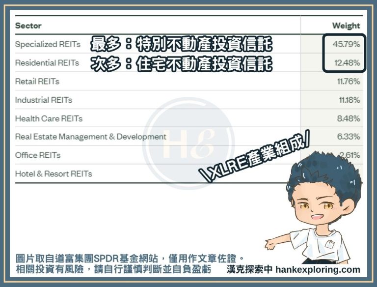 - 追蹤 Real Estate Select Sector Index(不動產精選行業指數)的美股ETF。